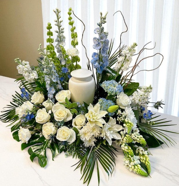 Delicate arrangements designed to encircle or accompany cremation urns, offering a serene...