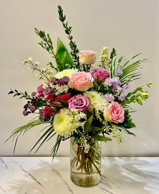 Softly elegant, Whispers of Beauty is a tender arrangement of pink, lavender, and white blooms, offering a quiet expression of sympathy and care. Designed to bring comfort and gentle presence during a time of remembrance.